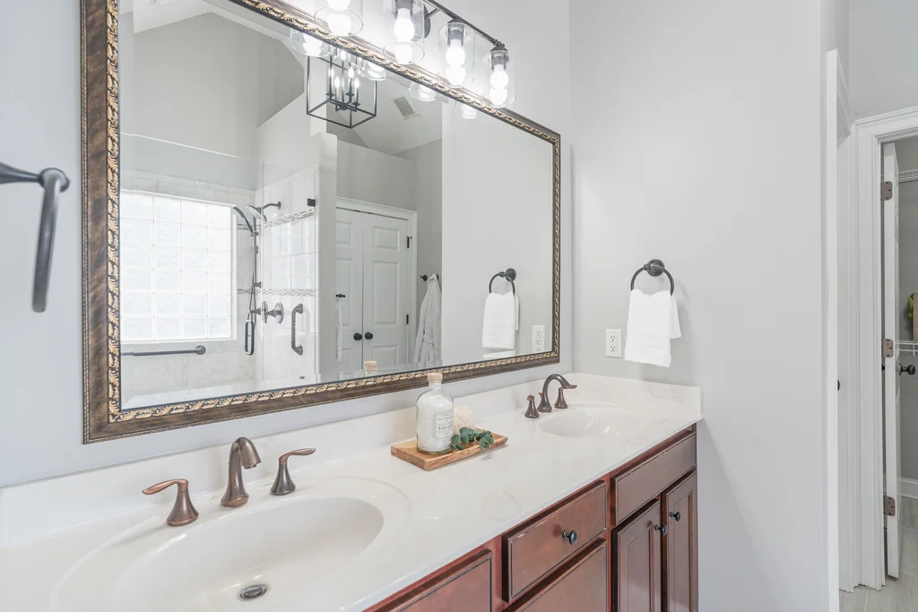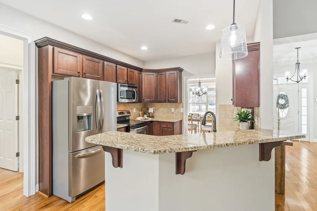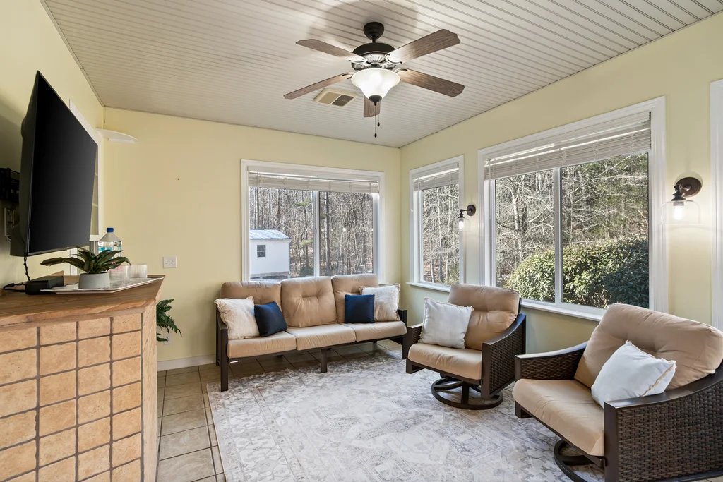 Tucked away on over 2 private acres, this custom brick ranch offers peaceful living with a picturesque creek and mature natural surroundings. The expansive yard provides privacy and space to enjoy the outdoors, complete with a wired 12x16 shed/workshop perfect for hobbies, storage, or projects. The home welcomes you with a covered front porch and continues to impress with a thoughtfully designed split-bedroom floor plan. The main level features hardwood floors throughout, upgraded crown molding, and a cozy living room with a gas log fireplace. The spacious primary suite is located on the main level and showcases a beautifully remodeled en-suite bath with an oversized walk-in tile shower, along with a backlit tray ceiling for added elegance. Two additional bedrooms are located on the main floor, while a fourth bedroom upstairs offers flexibility for guests, a home office, or bonus space. The kitchen is well-appointed with granite countertops, stainless steel appliances, and ample cabinetry, opening seamlessly to the living and dining areas. Outdoor living is a highlight with an enclosed three-season room off the back deck, ideal for enjoying the serene views year-round. This home blends comfort, privacy, and quality craftsmanship—don’t miss your opportunity to make it yours!