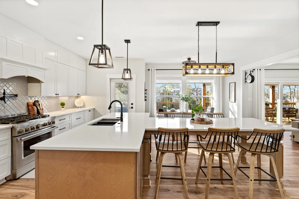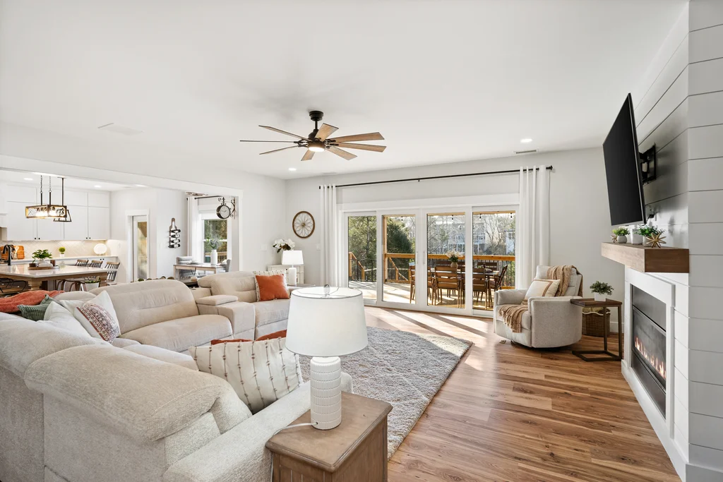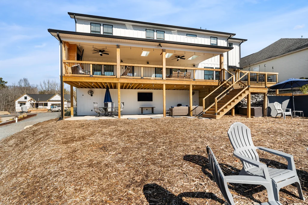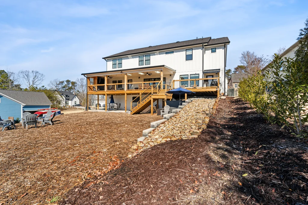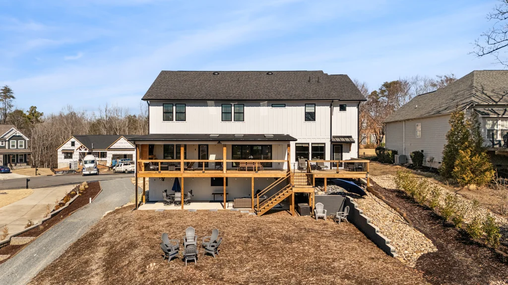 There are homes you move into… and then there are homes you build a life around. Welcome to an amazing modern farmhouse estate offering 6586 square feet of luxury, craftsmanship, and thoughtful design, perfectly positioned on a private .93-acre cul-de-sac lot with lake access and a dock that conveys in the heart of Tega Cay. Designed for those who value space, privacy, and connection, this custom-built home blends high-end finishes with exceptional construction quality — the kind you can feel the moment you walk through the door. Wrapped in classic Hardie siding, bold black accents, warm garage doors, and a welcoming rocking chair front porch, the curb appeal sets the tone for what’s inside. Elevated Everyday Living Light-filled spaces and intentional details create a home that lives as beautifully as it looks. • 3/4” flooring throughout the entire home • Custom built-ins in the dining room • Under-cabinet lighting • Private office with included cabinetry & desk • Walk-in closets in every bedroom • Soundproofed second-floor bedrooms for ultimate quiet • Hidden room for added versatility The primary suite offers a true spa-like retreat with heated towel bar and two soaking tubs, creating a peaceful escape at the end of the day. Built Better Than New Construction Engineered with quality and efficiency in mind: • 2x6 exterior walls • Tankless hot water • Two-zone central air • 400-amp electrical service Comfort, performance, and long-term value — all behind the walls. Indoor–Outdoor Living at Its Finest Created for gathering and making memories: • Covered two-story deck & patio • Outdoor gas fireplace • Walkout lower level • Private lake access with dock Host sunset dinners, holiday parties, or quiet mornings with coffee — this home was made for both entertaining and everyday relaxation. Flexible Space for Real Life The fully finished lower level offers incredible options: • Full in-law suite • Bathroom ready for stackable washer/dryer • Plumbed for a future full kitchen Perfect for multi-generational living, extended guests, or long-term flexibility. Community & Lifestyle Enjoy resort-style amenities just minutes from your door: Marina, beach access, water sports, restaurants, pickleball & tennis courts, trails, and parks — all within Tega Cay and zoned for the award-winning Fort Mill School District. The Opportunity Nearly an acre. Lake access. Luxury finishes. Space for everyone to gather. This isn’t just a home — it’s a forever place, built for those ready to settle in, spread out, and create lasting memories. Welcome to lake life. Welcome home.