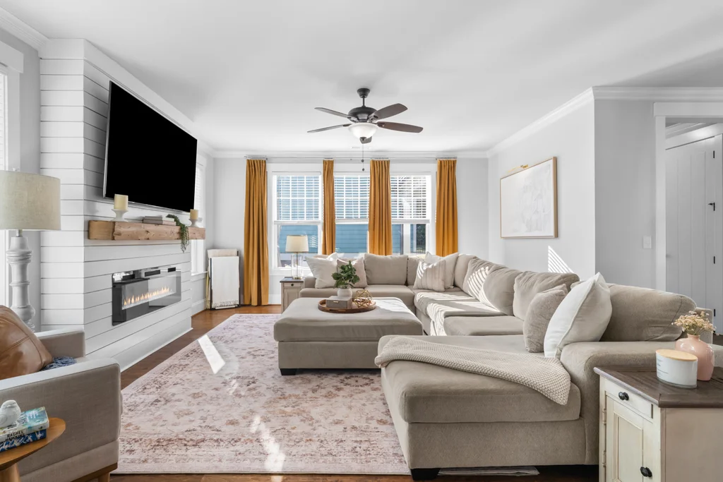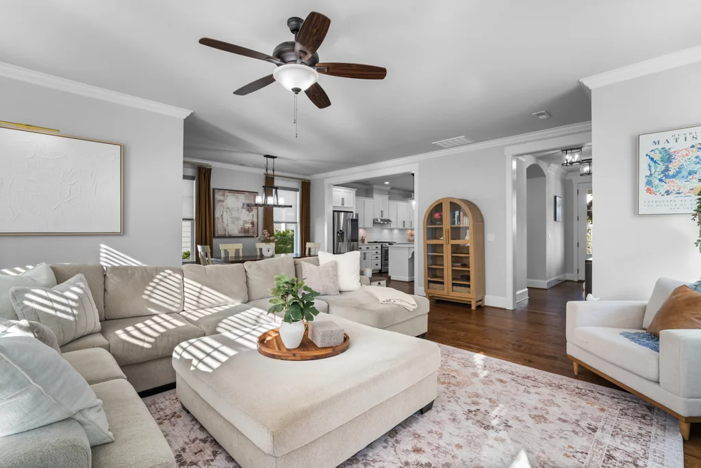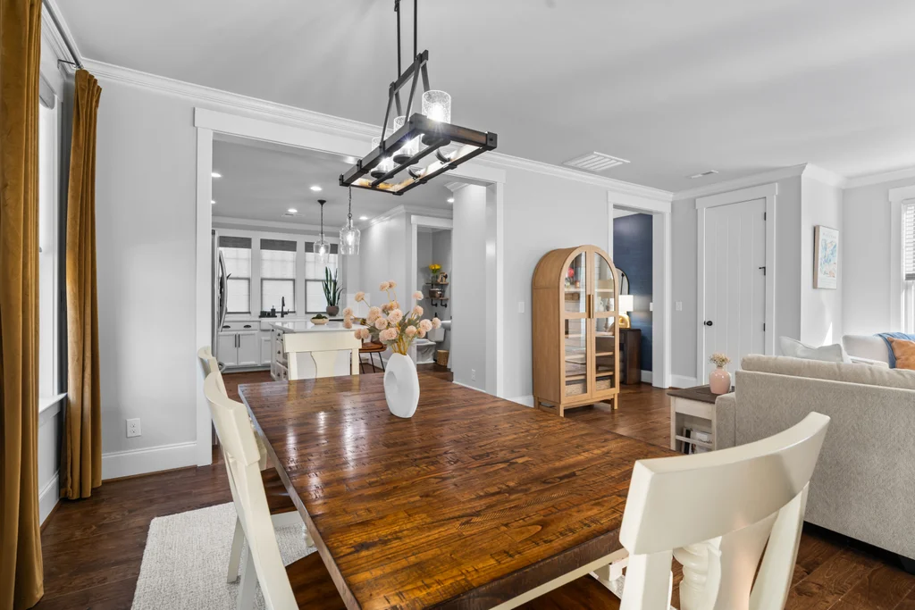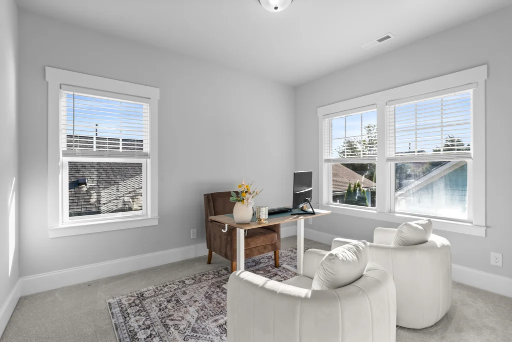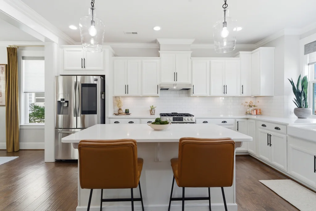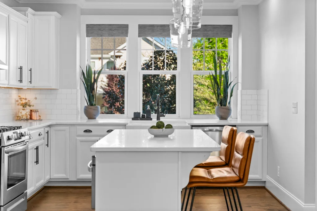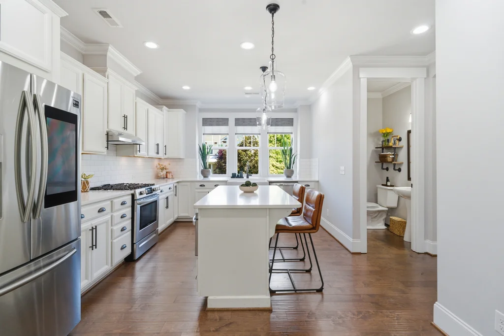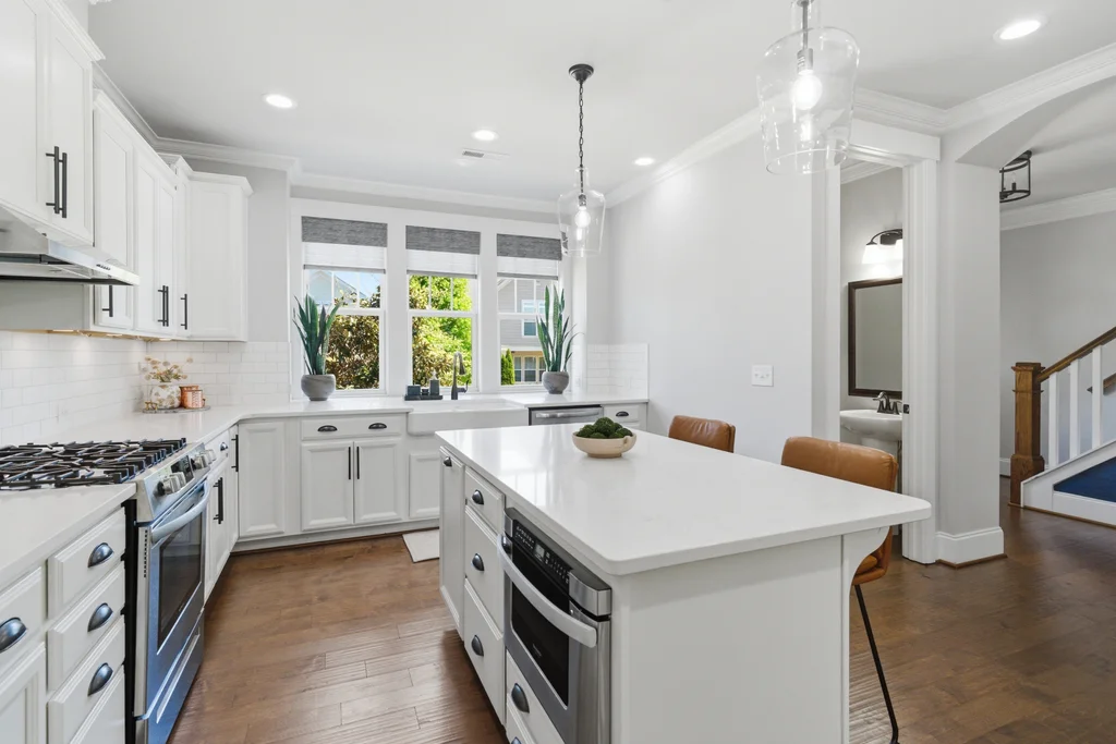 This 3-bedroom, 2.5-bathroom craftsman features high-end finishes, soaring ceilings, and oversized windows that flood the home with natural light. A chef’s dream kitchen equipped with painted white soft-close cabinetry, quartz countertops, farmhouse sink, kitchen island and stainless-steel appliances including a gas range & exhaust vented to the exterior.