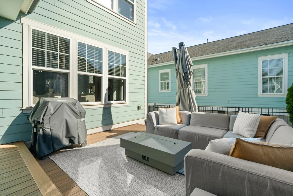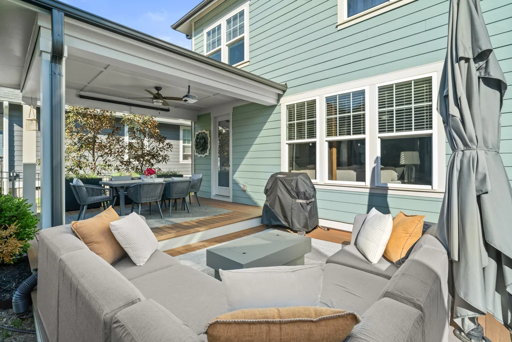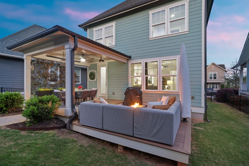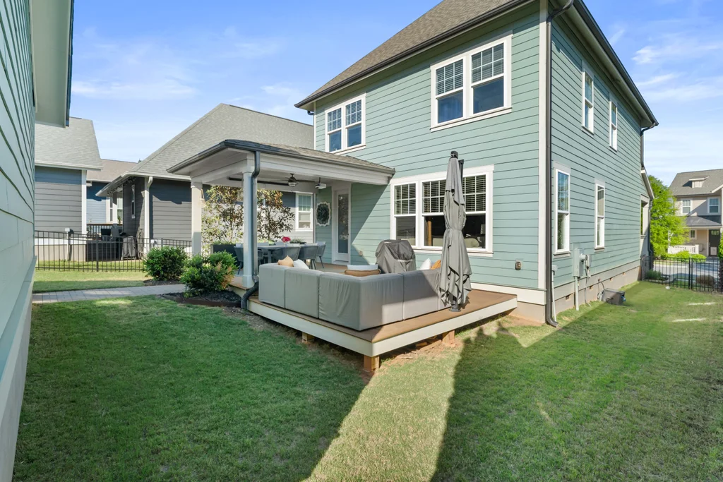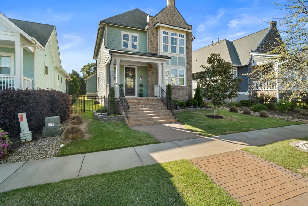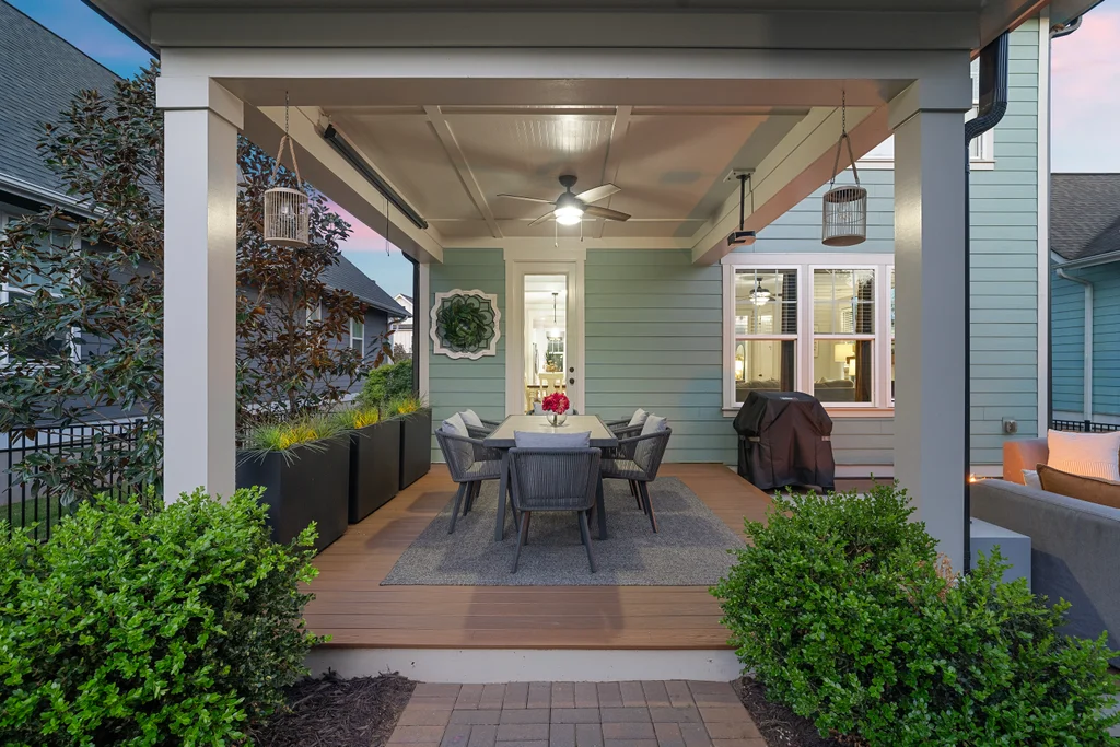 Elegant hardwood floors span the main level and continue up the stairs, complemented by ceramic tile in all bathrooms and the laundry room. The primary en suite is an oasis itself with trey ceiling, tons of natural light and spa-like bathroom. Secondary rooms have spacious closets. Relax on your front porch—a staple of the classic Riverwalk charm. This 2-story stunner with detached garage has both front & back covered porches with an extended patio for eating, entertaining or relaxing.