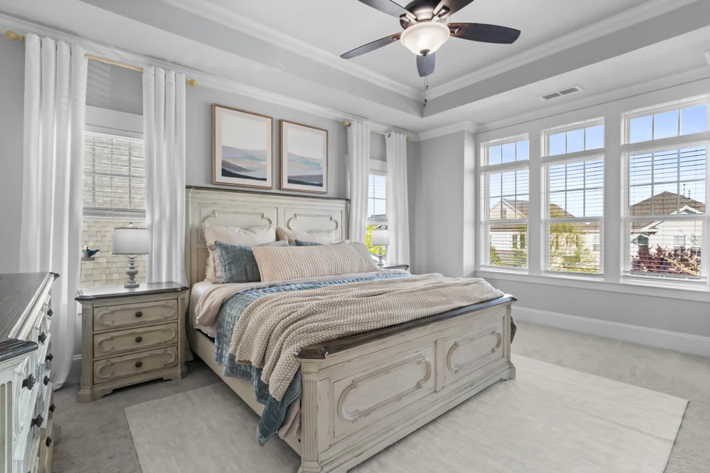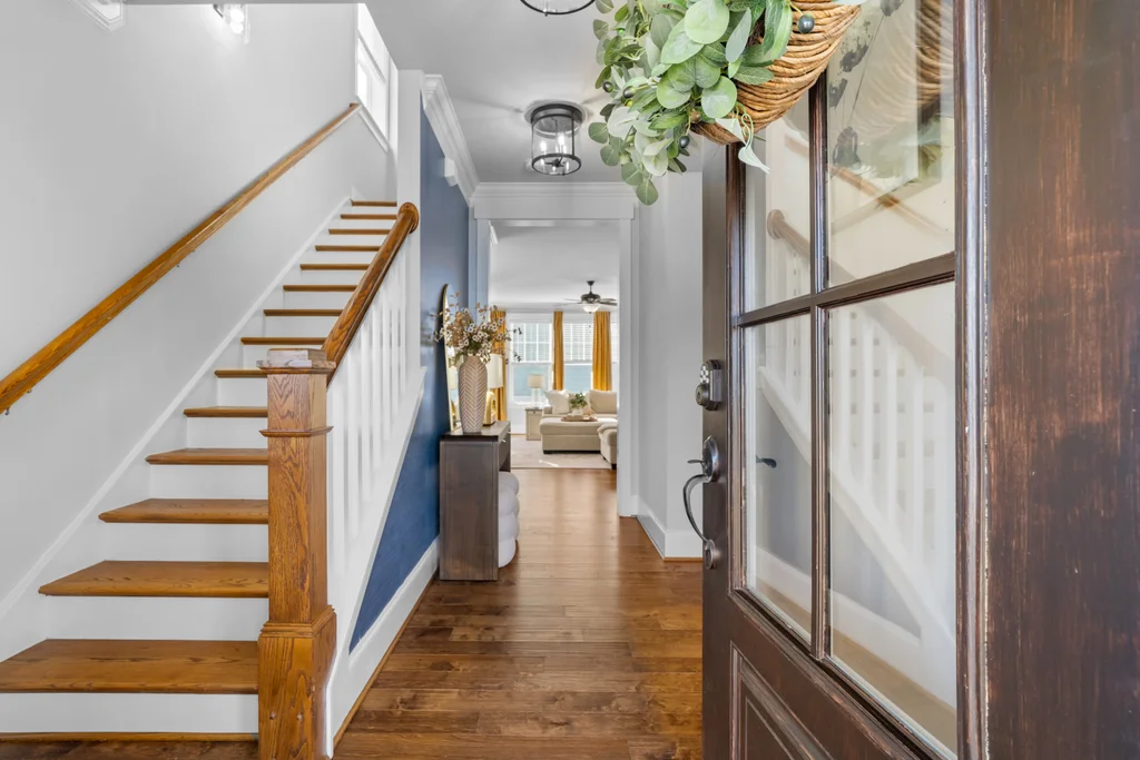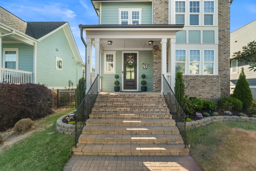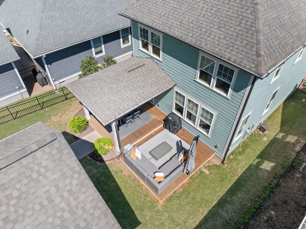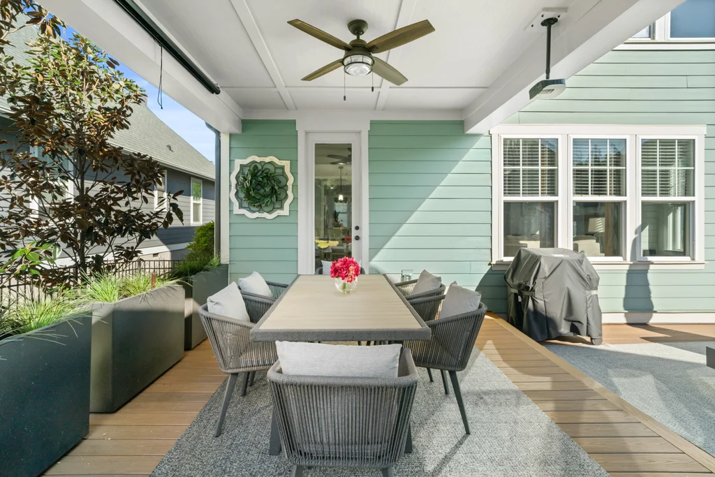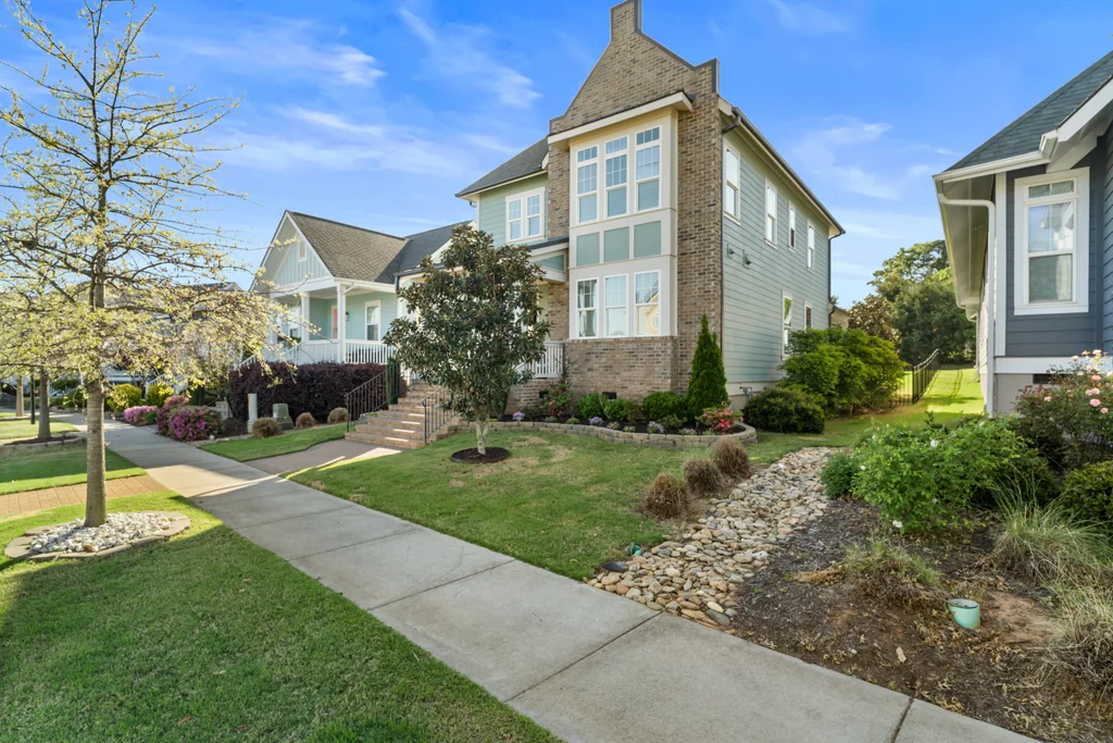Elegant hardwood floors span the main level and continue up the stairs, complemented by ceramic tile in all bathrooms and the laundry room. The primary en suite is an oasis itself with trey ceiling, tons of natural light and spa-like bathroom. Secondary rooms have spacious closets. Relax on your front porch—a staple of the classic Riverwalk charm. This 2-story stunner with detached garage has both front & back covered porches with an extended patio for eating, entertaining or relaxing.